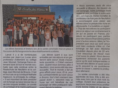 Un échange scolaire qui s'inscrit dans la durée entre le Collège Jean Monnet de Broons et La Realschule de Neufahrn In …